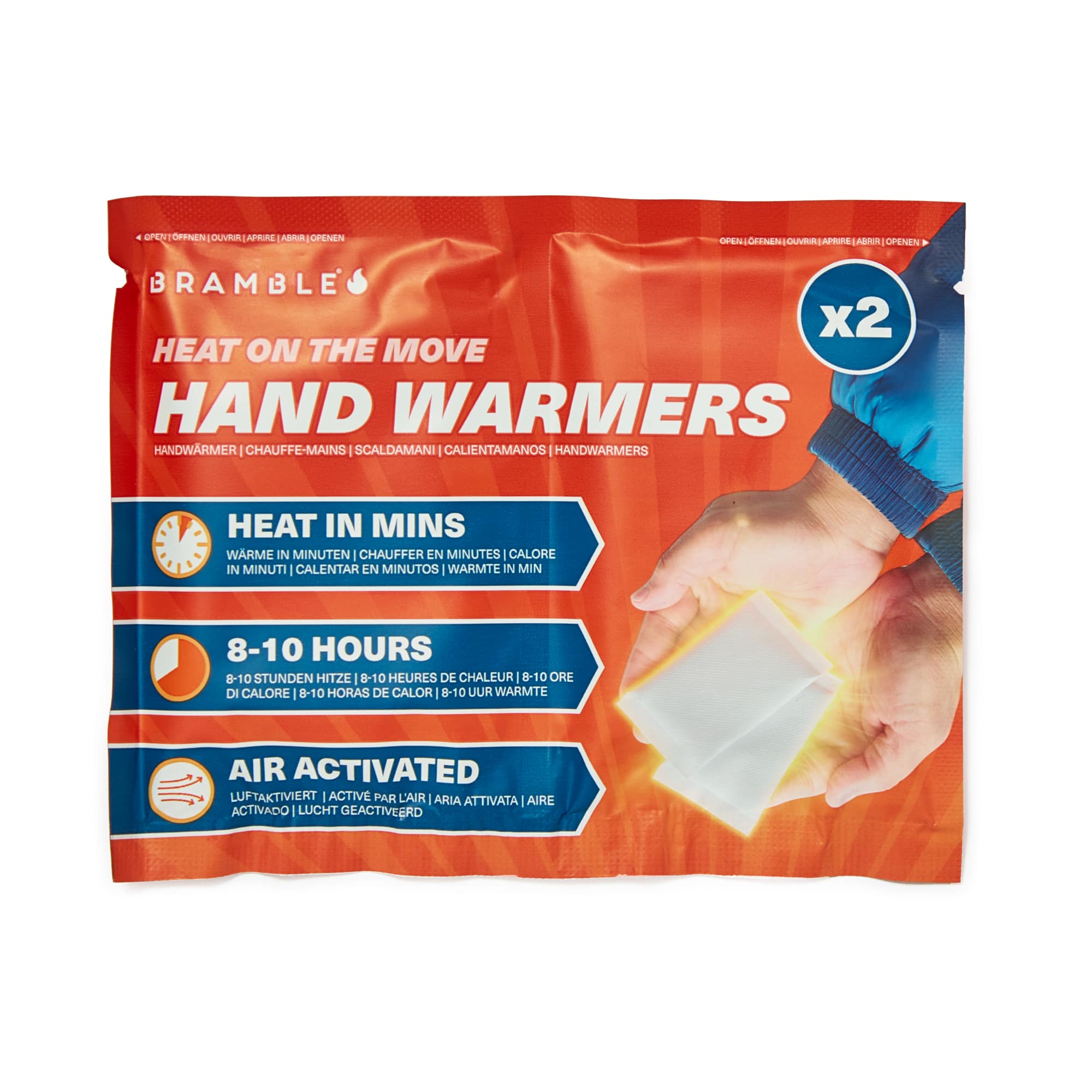 The ideal solution for cold hands on the go! This double pack of hand warmers heat up in minutes and will last up to 10 hours. Pop them inside your gloves for that warm and toasty feel all day.