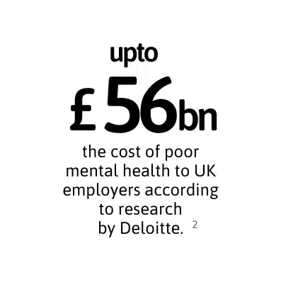 Research by Deloitte, published in 2022, shows that on average, for every £1 spent on supporting their people’s mental health, employers will get £5 back on their investment in reduced presenteeism, absenteeism and staff turnover.*